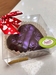 Indulge in the ultimate treat for peanut butter lovers with our Peanut Butter Heart! This 4-inch heart-shaped confection is filled with rich, creamy, all-natural peanut butter and encased in luscious Milk Belgian chocolate. Every bite offers a perfect balance of nutty richness and velvety chocolate, making it a dreamy indulgence for anyone who loves the classic pairing of peanut butter and chocolate.